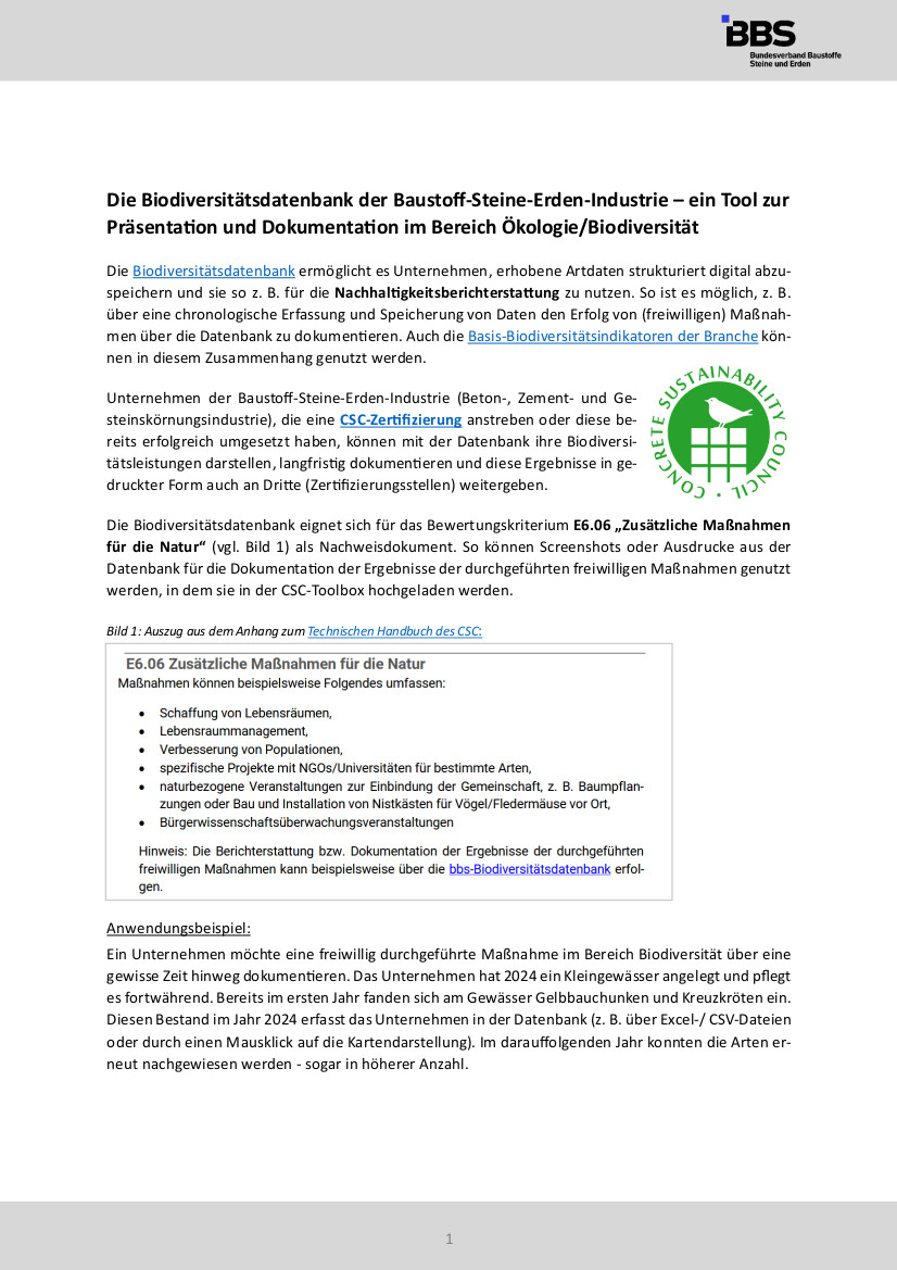 Die Biodiversitätsdatenbank der Baustoff-Steine-Erden-Industrie – ein Tool zur Präsentation und Dokumentation im Bereich Ökologie/Biodiversität