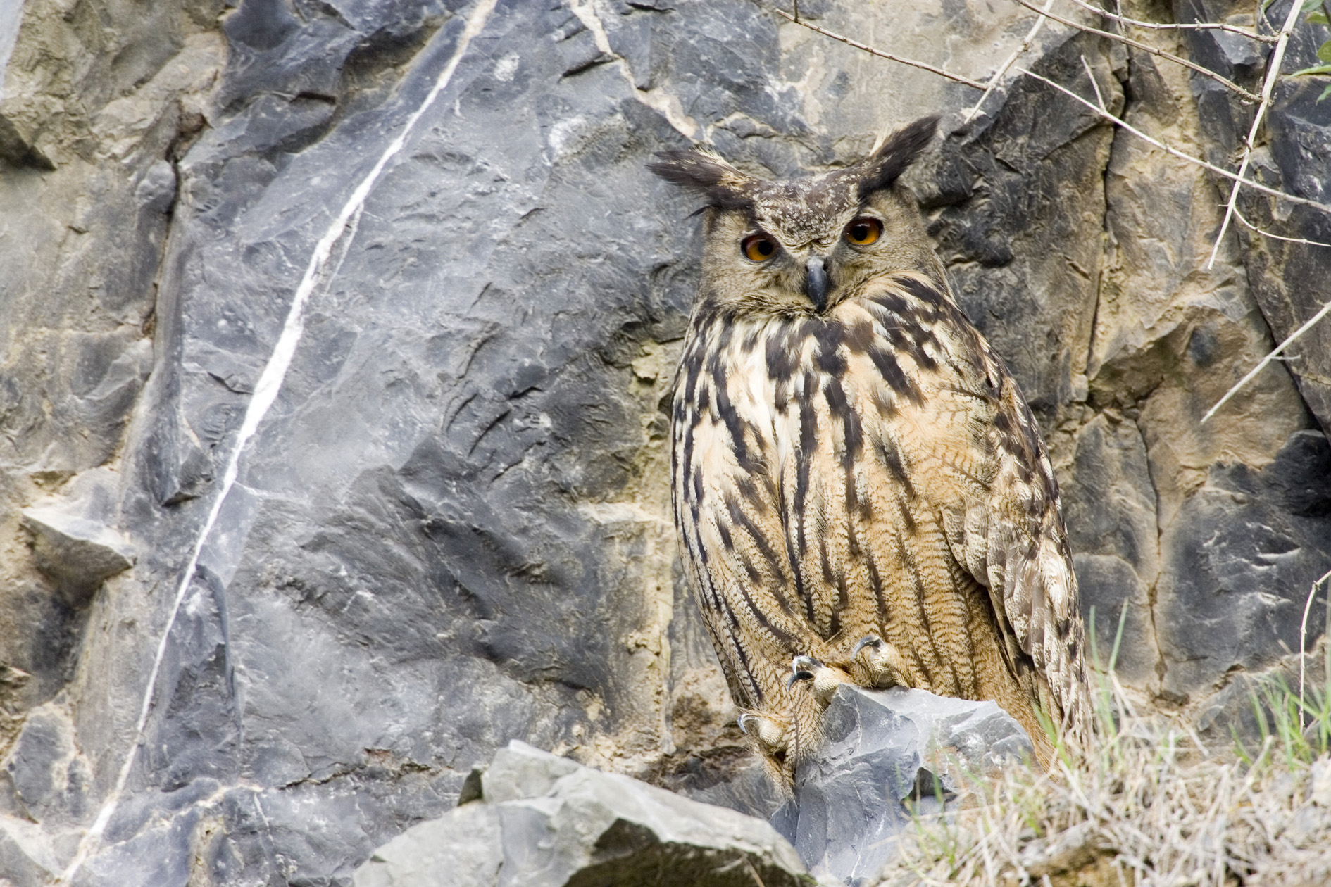 Die niederbergischen Uhus in den Kalksteinbrüchen und die Betreiber der Brüche sind eine erfolgreiche Symbiose eingegangen. Das alltägliche Geschehen auch im betriebenen Steinbruch nehmen die ortsansässigen Uhus stoisch hin. Die Steinbruchbetreiber schützen die Brutplätze, kümmern sich um verletze oder geschwächte Tiere und bereiten den Umzug zum neuen Brutplatz vor, sollte der alte Brutplatz dem Abbau im Weg stehen. Gemeinsam mit dem amtlichen und ehrenamtlichen Naturschutz wird die Entwicklung der Populationen untersucht und in regelmäßigen Monitoringberichten dokumentiert.