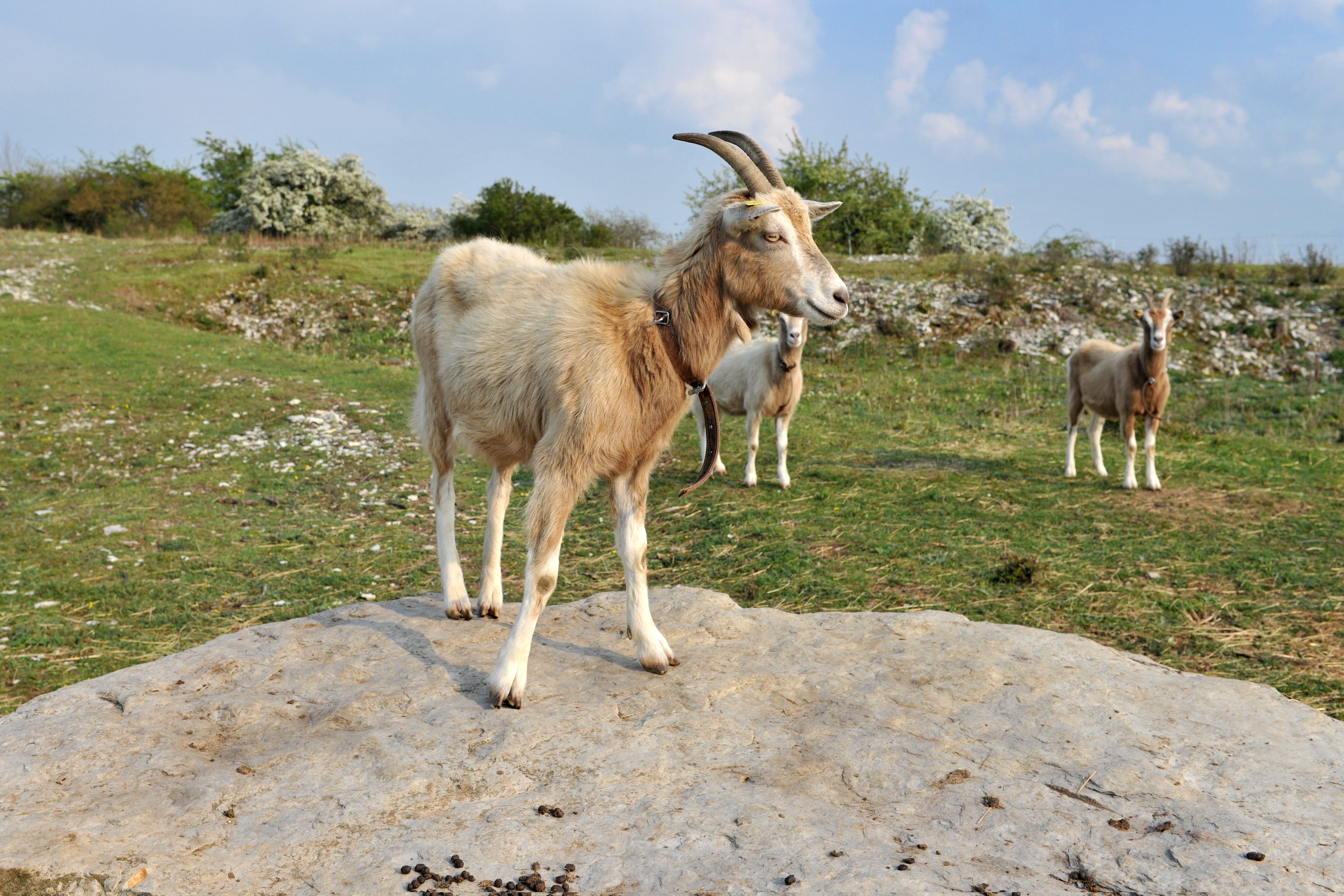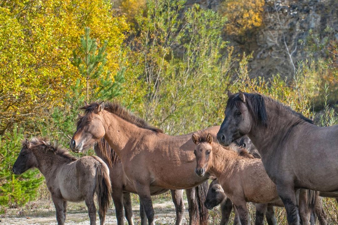 mit Taurus-Rindern, Konik-Pferden, Burenziegen und Waldschafen, unter anderem an den